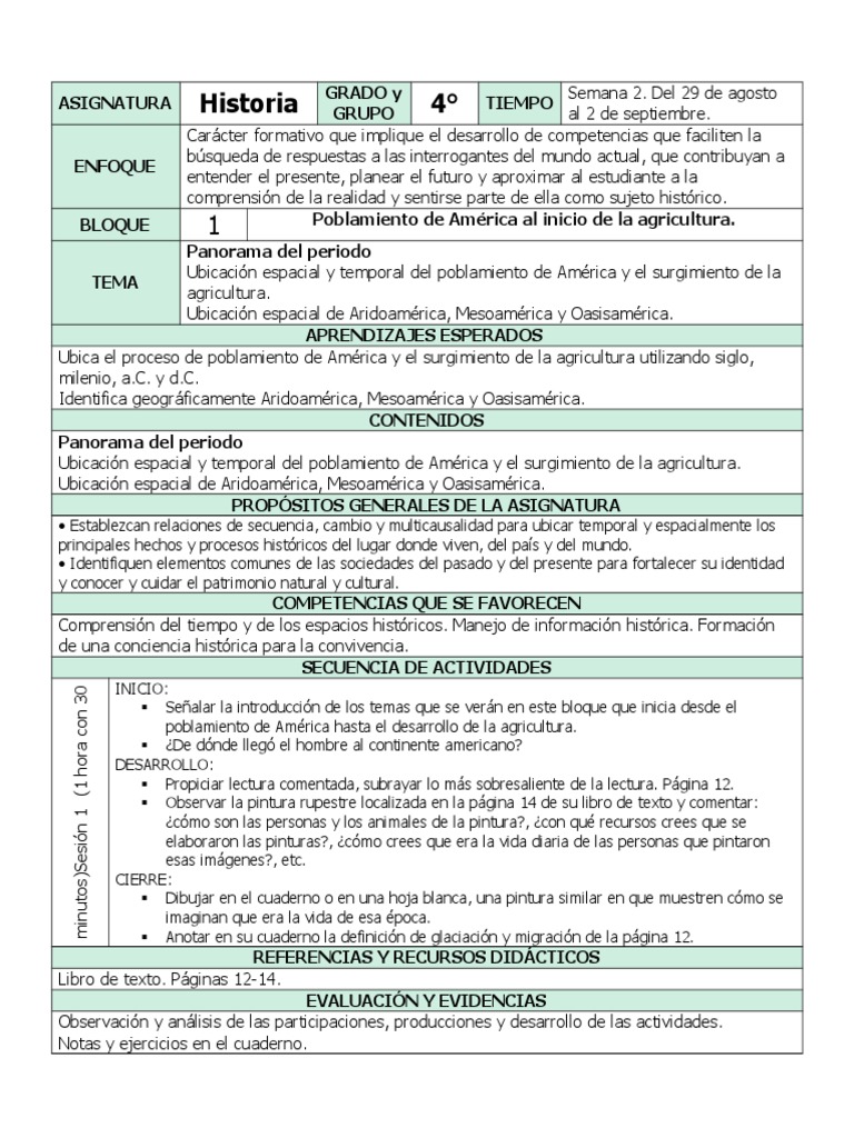 Plan 4to Grado - Bloque 1 Historia.doc | Nómada | Mesoamérica